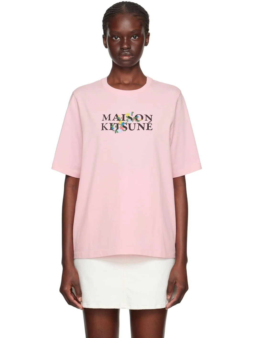 Cotton jersey T-shirt. · Rib knit crewneck · Logo and floral graphic printed at front Supplier color: Pale pink