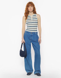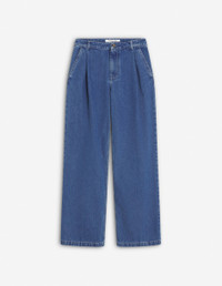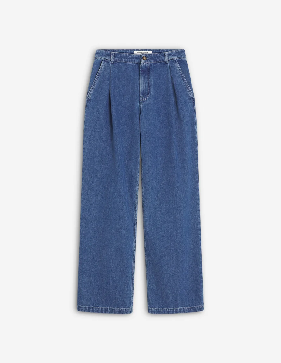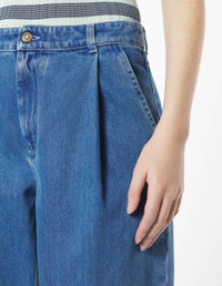 DETAILS Pleated denim jeans. Relaxed cut with Profile Fox embossed leather jacron at the back. - Pleated denim jeans - Relaxed cut - Waistband with belt loops - Button closure with hidden zipper - Two side slash pockets - Profile Fox embossed leather jacron at the back - Two patch back pockets OW01101WD4010-P413 SIZE & CUT Cut: RELAXED Sizing: WOMEN The female model is 10 and is wearing size S MATERIAL Main Material: 100% COTTON, Pocket lining: 35% COTTON, 65% POLYESTER TRACEABILITY Made in Italy