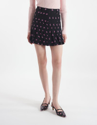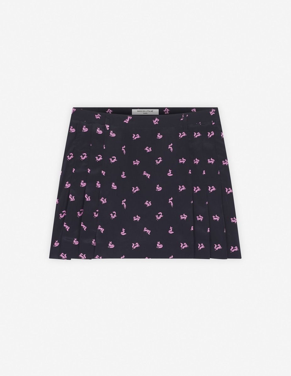 DETAILS Pleated crepe mini skirt with Fancy Fox print. - Pleated crepe mini skirt with Fancy Fox print - Mini length - Belt loops at the waistband - Zipped side closure - All-over contrast Fancy Fox motif - Plain crepe lining NW01517WF4033-P199 SIZE & CUT Cut: MINI Sizing: WOMEN The female model is 5.7 and is wearing size S MATERIAL Main Material: 100% VISCOSE, Lining: 100% POLYESTER TRACEABILITY Made in Bulgaria