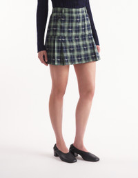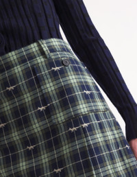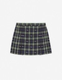 DETAILS Pleated cotton twill mini skirt with jacquard Fox Check. - Pleated cotton twill mini skirt with jacquard Fox Check - Mini length - Belt loops at the waistband - Two buttoned patch pockets at the front - Zipped side closure - Profile Fox integrated into the Check motif NW01504WW0118-B482 SIZE & CUT Cut: MINI Sizing: WOMEN The female model is 5.7 and is wearing size 36 MATERIAL Main Material: 100% COTTON, Pocket lining: 100% COTTON TRACEABILITY Made in Bulgaria
