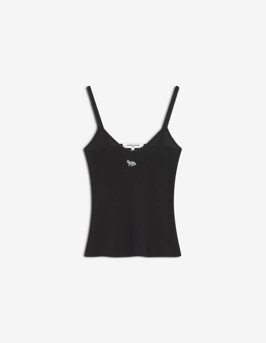 DETAILS Pointelle jersey camisole. Fitted cut with embroidered Tonal Baby Fox patch. - Pointelle jersey camisole - Fitted fit - Scoop neckline with scallop details - Tonal Baby Fox patch embroidered at the chest PW00618KA0027-P199 SIZE & CUT Cut: FITTED Sizing: WOMEN The female model is 5.7 and is wearing size S MATERIAL 100% COTTON TRACEABILITY Made in Greece
