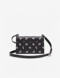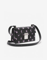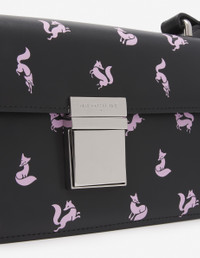 DETAILS “Preppy” baguette in smooth leather with strap and Fancy Fox print. - Smooth leather “Preppy” baguette with Fancy Fox print - Shoulder and crossbody wear - Adjustable strap with buckle and belt loops - Flap with engraved “Maison Kitsune Paris” metal clasp - Patch pocket at the back - Zipped interior pocket with engraved Profile Fox slider - Woven “Maison Kitsune” interior label - Twill lining - Dimensions: 24x14x7 cm LW05145LR0004-0010 SIZE & CUT Sizing: WOMEN MATERIAL Exterior: 100% BOVINE LEATHER, Interior: 100% COTTON, Accessories details: 100% ZINC ALLOY TRACEABILITY Made in Portugal