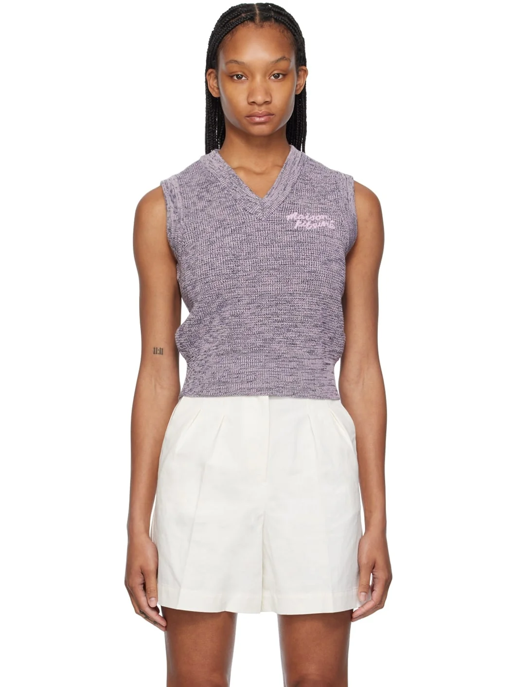 Knit cotton mouline vest. · Rib knit V-neck, hem, and armscyes · Logo embroidered at chest · Cropped hem Supplier color: Lilac melange 100% cotton. Made in Bulgaria 241389F100001