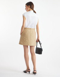 DETAILS Mini skirt with quilted kaleidoscope motifs. - Mini skirt with quilted motifs - Mini length - Waistband - Two side seam pockets - Invisible zipper closure at the back - Tonal lining NW01520WQ4036-P245 SIZE & CUT Cut: MINI Sizing: WOMEN The female model is 5.7 and is wearing size S MATERIAL Main Material: 100% POLYESTER, Stuffing material: 100% POLYESTER, Lining: 100% POLYESTER TRACEABILITY Made in Macedoine