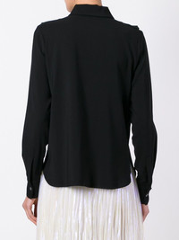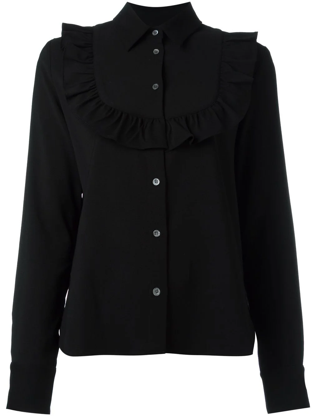 ruffled panel shirt Black virgin wool blend ruffled panel shirt from Maison Kitsune. Imported Composition Virgin Wool 88%, Polyamide 10%, Spandex/Elastane 2% SIZE & FIT Model measurements Height 5 ft 9 in(1.76 m) Bust/Chest 29.92 in(76 cm) Hips 34.64 in(88 cm) Waist 24.01 in(61 cm) Washing instructions Dry Clean Only
