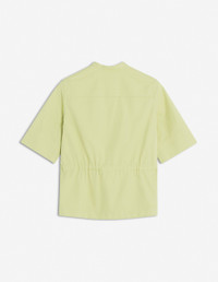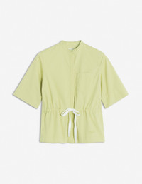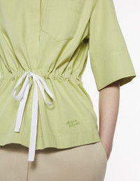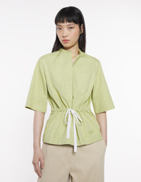 DETAILS Short sleeve cotton twill shirt with Maison Kitsune Handwriting signature embroidered. - Plain cotton twill shirt - Officer's collar - Hidden engraved button closure - Patch chest pocket - Short sleeves - Drawstring waist - Tone-on-tone Maison Kitsune Handwriting signature embroidered at the hem OW00410WW9031-0171 SIZE & CUT Cut: STRAIGHT Sizing: WOMEN The female model is 5 and is wearing size S MATERIAL 100% COTTON TRACEABILITY Made in Portugal