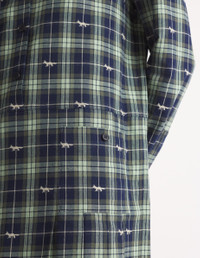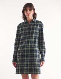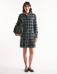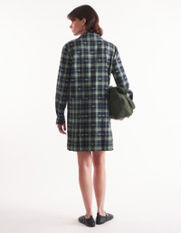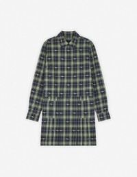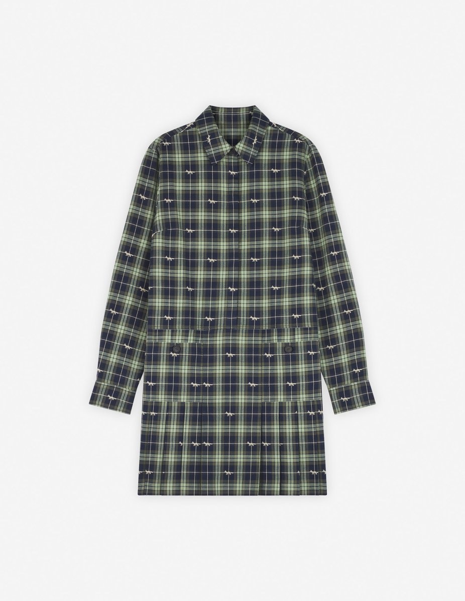 DETAILS Pleated cotton twill shirt dress with jacquard Fox Check. - Pleated cotton twill shirt dress with jacquard Fox Check - Mini length - Shirt collar - Hidden button closure - Long sleeves finished off with button straight cuffs - Integrated belt - Two buttoned patch pockets at the front - Pleated skirt - Profile Fox integrated into the motif NW01605WW0118-B482 SIZE & CUT Cut: MINI Sizing: WOMEN MATERIAL Main Material: 100% COTTON, Pocket lining: 100% COTTON TRACEABILITY Made in Bulgaria