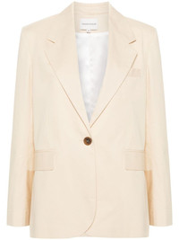 tailored cotton blazer Highlights - Cream white - Cotton - Twill weave - Notched lapels - Long sleeves with buttoned cuffs - Logo patch at the sleeve - Chest welt pocket - Dart detailing - Two side flap pockets - Rear slit - Full lining - Straight hem - Front button fastening Imported Composition Lining: Cotton 100%, Viscose 100% Outer: Cotton 100% SIZE & FIT FittingInformation Designed to be unstructured, offering a loose fit throughout The internal shoulder pads offer a structured shape Made from a midweight non-stretch fabric This piece fits true to size – take your usual size Washing instructions Dry Clean Only