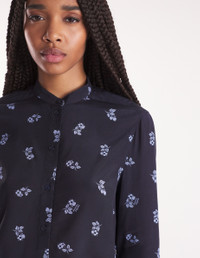 DETAILS Fluid shirt with Strawberry Stamp print. Relaxed fit with officer collar. - Printed fluid shirt - Relaxed fit - Officer collar - Button closure - Long sleeves finished off with button straight cuffs NW00402WF4034-P480 SIZE & CUT Cut: RELAXED Sizing: WOMEN MATERIAL 100% VISCOSE TRACEABILITY Made in Bulgaria