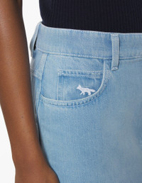 DETAILS Straight denim skirt. Midi length with Profile Fox embroidery and Maison Kitsune embossed jacron. - Straight denim skirt - Midi length - Waistband with belt loops - Engraved metal button closure and hidden zipper - Five pockets - Profile Fox embroidered on the ticket pocket - Maison Kitsune embossed leather jacron at the back - Back slit OW01504WD4010-P404 SIZE & CUT Cut: MIDI Sizing: WOMEN The female model is 9.1 and is wearing size S MATERIAL Main Material: 100% COTTON, Pocket lining: 100% COTTON TRACEABILITY Made in Italy