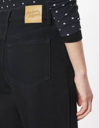 DETAILS Denim jeans. Straight fit with an embossed Maison Kitsune Handwriting leather jacron. - Denim jeans - Straight fit - Waistband with belt loops - Maison Kitsune engraved metal button closure with hidden zip fly - Five pockets - Embossed leather Maison Kitsune Handwriting jacron at the back PW01117WD4018-P199 SIZE & CUT Cut: STRAIGHT Sizing: WOMEN The female model is 5.7 and is wearing size 26 MATERIAL Main Material: 100% COTTON, Pocket lining: 35% COTTON, 65% POLYESTER TRACEABILITY Made in Italy