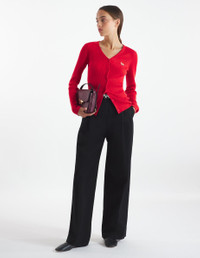 DETAILS Brushed cotton gabardine pants with double pleats. Tailored fit with "Maison Kitsune Handwriting" signature embroidered under the back pocket. - Plain brushed cotton gabardine pants with double pleats - Tailored fit - Belt loops at the waistband - Button closure with hidden zipper - Two slash side pockets - Two welt back pockets, one with button flap - Embroidered "Maison Kitsune Handwriting" signature under the back pocket NW01110WW0122-P199 SIZE & CUT Cut: TAILORED Sizing: WOMEN The female model is 5.7 and is wearing size S MATERIAL Main Material: 100% COTTON, Pocket lining: 100% COTTON TRACEABILITY Made in Romania
