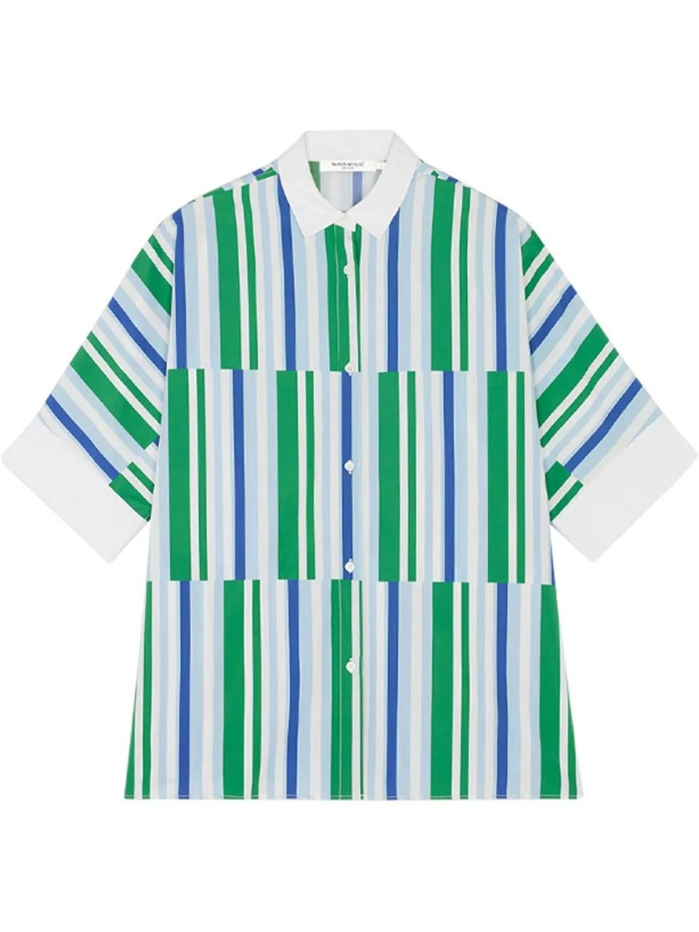 striped shirt Maison Kitsune's refreshing aesthetic is epitomised in this short-sleeved shirt in the vibrant alternating graphic stripe pattern. Highlights - Green/blue - Cotton - Vertical stripe pattern - Classic collar - Front button fastening - Short sleeves - Straight hem - When buying this unisex item, keep in mind that it is graded in standard men's sizing. Imported Composition Cotton 100%