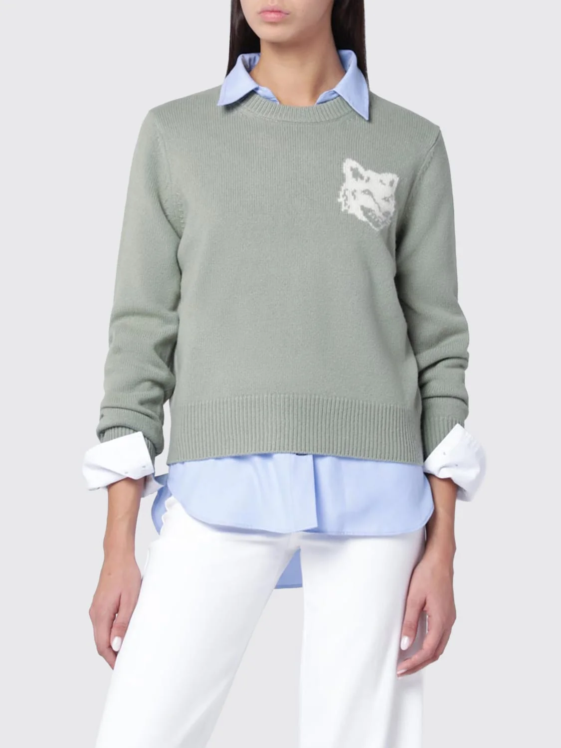 DESCRIPTION - Style: Casual - Logo: Chillax Fox - Model: Crewneck - Shoulders: Regular - Sleeves: Long - Cuffs: Ribbed - Bottom: With ribbed edges - Materials: Wool - Pattern: Logo, Plain-colored DETAILS AND CARE Composition _100%WO SIZE AND FIT Sizes not available Size and fit Regular fit Designer code: NW00808KM0329 0396 Giglio Code: H58690 Designer: Maison Kitsune Collection: Maison Kitsune Woman Category: Clothing Maison Kitsune