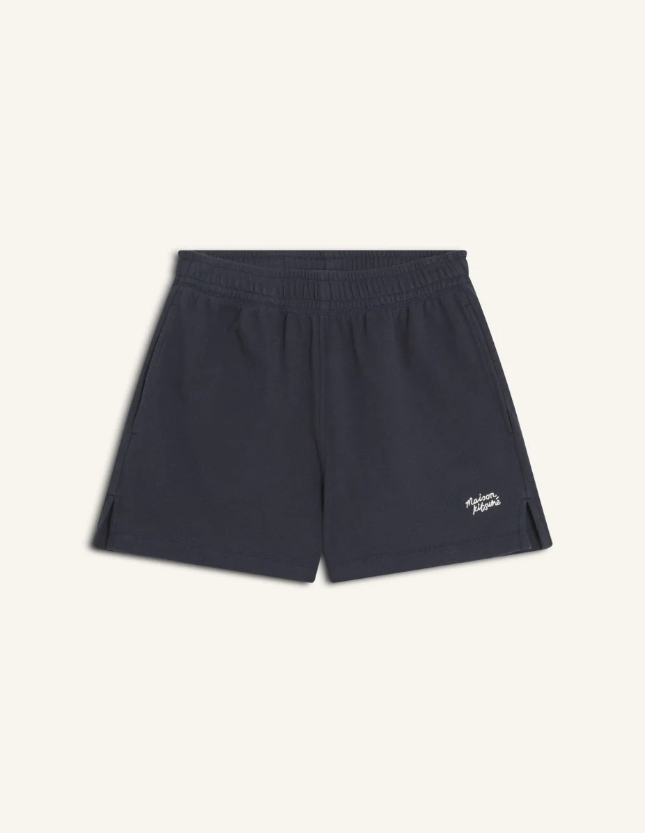 DETAILS Shorts in textured jersey. Regular fit with Maison Kitsune Handwriting embroidery at the bottom left. - Textured terry jersey shorts - Regular fit - Elasticated waistband with drawstring - Welt side pockets - Maison Kitsune Handwriting embroidery at the bottom left QW01400KA0035-0413 SIZE & CUT Cut: REGULAR Sizing: WOMEN MATERIAL 100% ORGANIC COTTON TRACEABILITY Made in Portugal