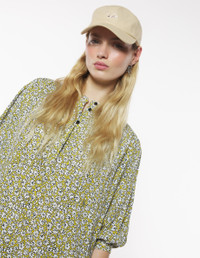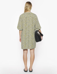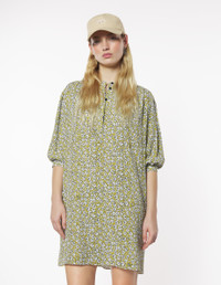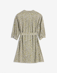DETAILS Crepe Daisy Field print dress. Comfort cut with Maison Kitsune signature integrated into the motif. - Crepe Daisy Field print dress with Maison Kitsune signature integrated into the motif - Mini length - Officer's collar - Front and back gathers - Hidden engraved button closure - 3/4 balloon sleeves finished off with slim buttoned cuffs - Belt loops and removable belt - Two slash side pockets OW01622WF4037-0198 SIZE & CUT Sizing: WOMEN The female model is 9.1 and is wearing size S MATERIAL Main Material: 100% VISCOSE, Pocket lining: 100% VISCOSE TRACEABILITY Made in Poland