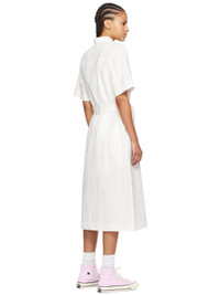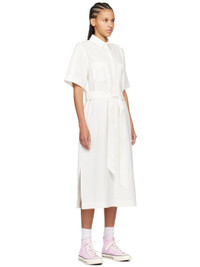 Crinkled cotton poplin shirt-style dress. · Spread collar · Button closure · Patch pockets · Detachable self-tie belt · Flared hem · Seam pockets · Vented side seams · Dropped shoulders · Pinched seam at sleeves · Embroidered logo patch at back collar · Cotton oxford cloth slip-style underlay Supplier color: White Body 1: 100% cotton. Body 2: 100% cotton. Made in Bulgaria 241389F054000