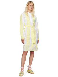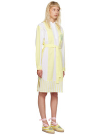 Cotton seersucker dress. Stripes throughout. · Band collar · Three-button placket · Patch pockets · Logo graphic printed at chest · Detachable self-tie belt at waist · Shirttail hem · Single-button barrel cuffs · Box pleat at back yoke Part of the Sweet Souvenirs collection within the Maison Kitsune x Hotel Olympia collaboration. Supplier color: Lemon 100% cotton. Made in Portugal 232389F052001