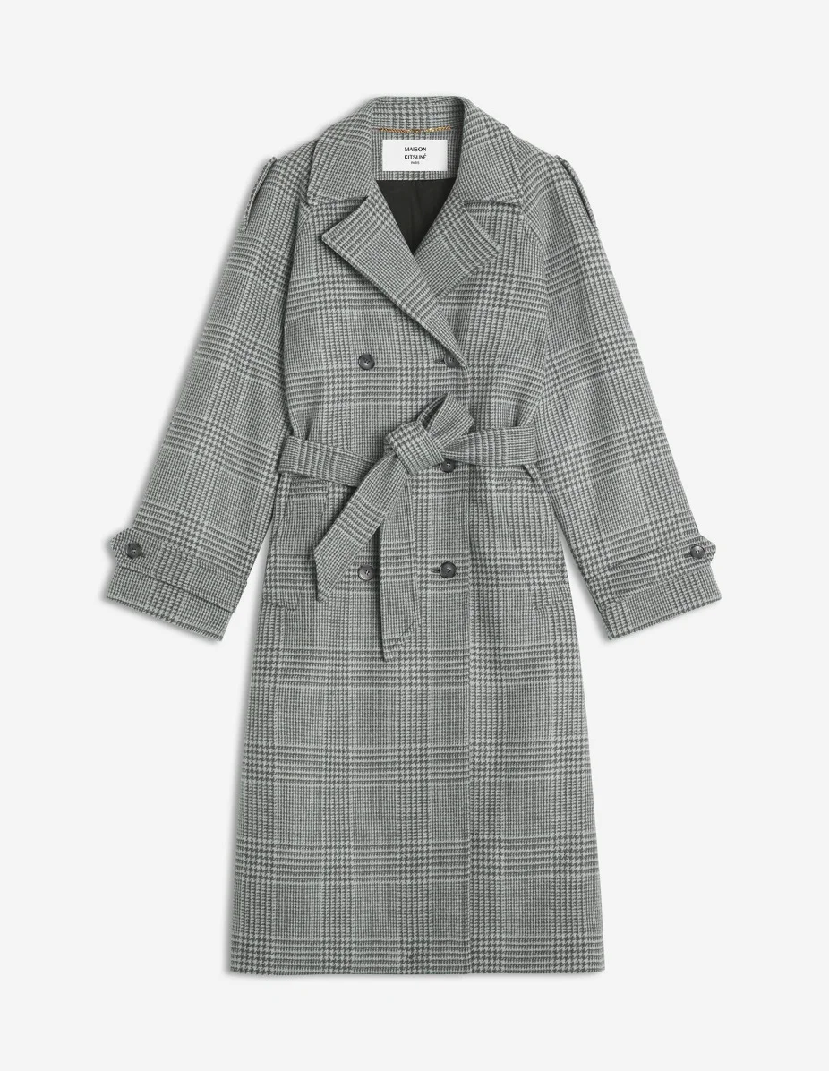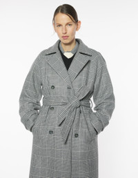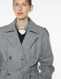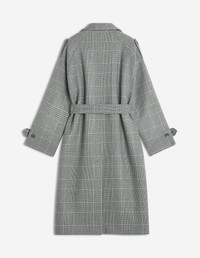 DETAILS Recycled wool trench, Prince of Wales motif. - Recycled wool trench coat with Prince of Wales pattern - Comfort fit - Double-breasted button closure - Removable belt with loops - Two welt pockets at the sides - Buttoned shoulder pads and buttoned tabs at the cuffs - Back vent - Profile Fox chain at the inner neckline PW02222WM2026-H131 SIZE & CUT Cut: COMFORT Sizing: WOMEN The female model is 5.7 and is wearing size 36 MATERIAL Main Material: 100% WOOL, Lining: 49% COTTON, 51% VISCOSE TRACEABILITY Made in Romania