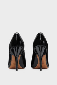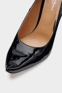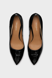 The Loved to Death pump is crafted in glossy patent goat leather, with hand-moulded details that recreate the signs of use over time. The slim, structured silhouette is defined by an upward toe crease, while the calf leather sole is hand-varnished and lightly sanded to reflect the shoe’s history. Maison Margiela's signature single white stitch appears at the back. Product Details Item ID S58WL0297P7426T8013 Upper: 100% Goat Leather Lining: 100% Ovine Leather Inside: 100% Ovine Leather Contrast: 100% Goat Leather Sole: 100% Calf Leather Pointed heeled pumps in glossy goat leather Hand-shaped upper with a natural upward toe crease Maison Margiela signature at the insole White stitching at the back Made in Italy