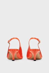 Maison’s Kinkies slingbacks offer a new ladylike shoe silhouette. Crafted from soft patent leather, the shoes feature handmade pleats referencing the 'memory-of' gesture, alluding to a pre-loved movement. They are reinforced with rubber at the toe for longevity, and are finished on a 5.5 cm heel. Maison Margiela's signature stitch appears at the back. Product Details Item ID S58WP0287P8194T4016 Upper: 100% Ovine Leather Lining: 100% Ovine Leather Inside: 100% Ovine Leather Contrast: 100% Ovine Leather Sole: 100% Calf Leather Heel hight: 5,5 cm Kitten heel Slingback shoes in soft patent leather Pointed toe with handmade pleat details Thin ankle strap with a buckle White stitching at the back Clean with soft, dampened cloth Made in Italy