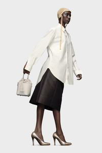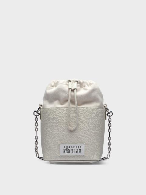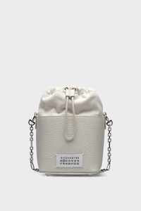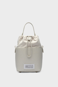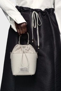 The 5AC bucket small, crafted from grainy leather, features a top handle and a chain shoulder strap. It is accented with the logo label at the front. The iconic 5AC line takes its name from the French word 'sac' (bag). It explores the Maison's Anonymity of the lining concept. The bag's metal rivets are covered in leather by hand, with the metal visible only where needed, for a clean aspect. Artisanal details include the bag's exposed edges hand-painted in tone with the leather. Product Details Item ID S61WG0035P4348H9677 Body: 100% Calf Leather Contrast: 79% Cotton 15% Polyester 6% Other Fibers Lining: 100% Cotton Inside: 100% Calf Leather Metallic hardware Bucket bag in grained leather and cotton canvas Drawstring fastening at the top Chain shoulder strap Numeric signature label at the front Protective metal feet at the base Four stitches at the back Made in Ital