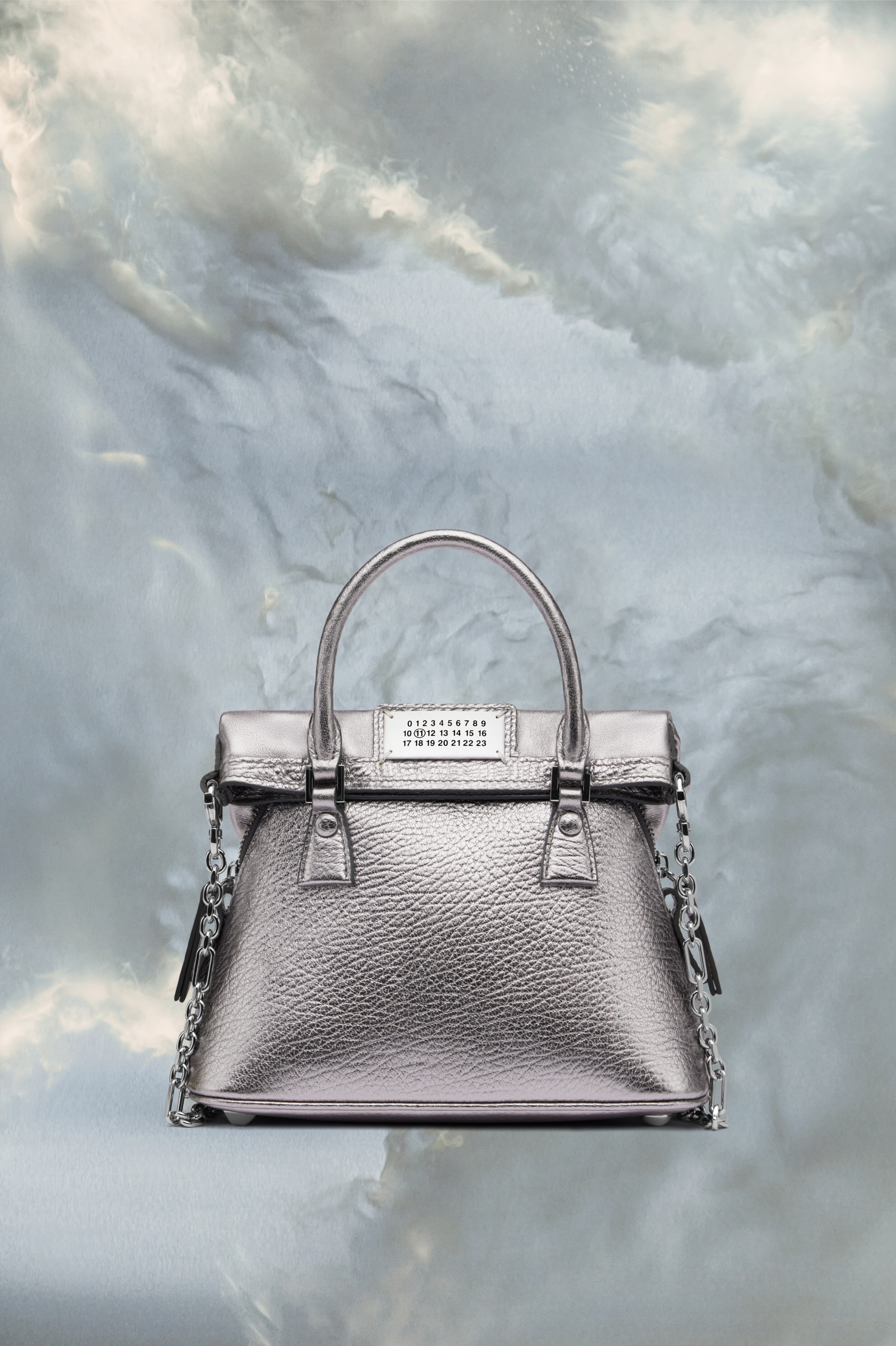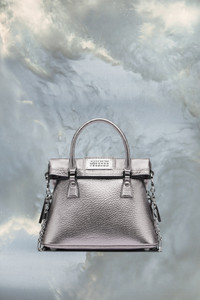 The micro 5AC Classique, crafted from metallic grainy leather, features top handles and a chain shoulder strap. It is accented with the logo label on the inner. The iconic 5AC line takes its name from the French word 'sac' (bag). It explores the Maison's Anonymity of the lining concept. The bag's metal rivets are covered in leather by hand, with the metal visible only where needed, for a clean aspect. Artisanal details include the bag's exposed edges hand-painted in tone with the leather. Product Details Item ID S56WG0081P6749H3809 Body: 100% calf leather Contrast 100% ovine leather Lining: 100% polyester Metallic hardware Handbag in metallized grainy leather Button closure Four stitches on the back Internal flat pocket Logo stamp inside Metal feet Clean with a gentle cleaner Made in Italy 15 cm x 10 cm x 22 cm/6 in x 4 in x 8,5 (Height x Width x Length) Height refers to the closed bag with lining and label inside Handle drop: 7 cm/2,7 in Max. shoulder strap drop: 55 cm/21,6 in Min. shoulder strap drop: 48 cm/18,8 in A digital certificate provided by the Aura Blockchain Consortium guarantees the authenticity of this product. Discover more on auraluxuryblockchain.com/#about