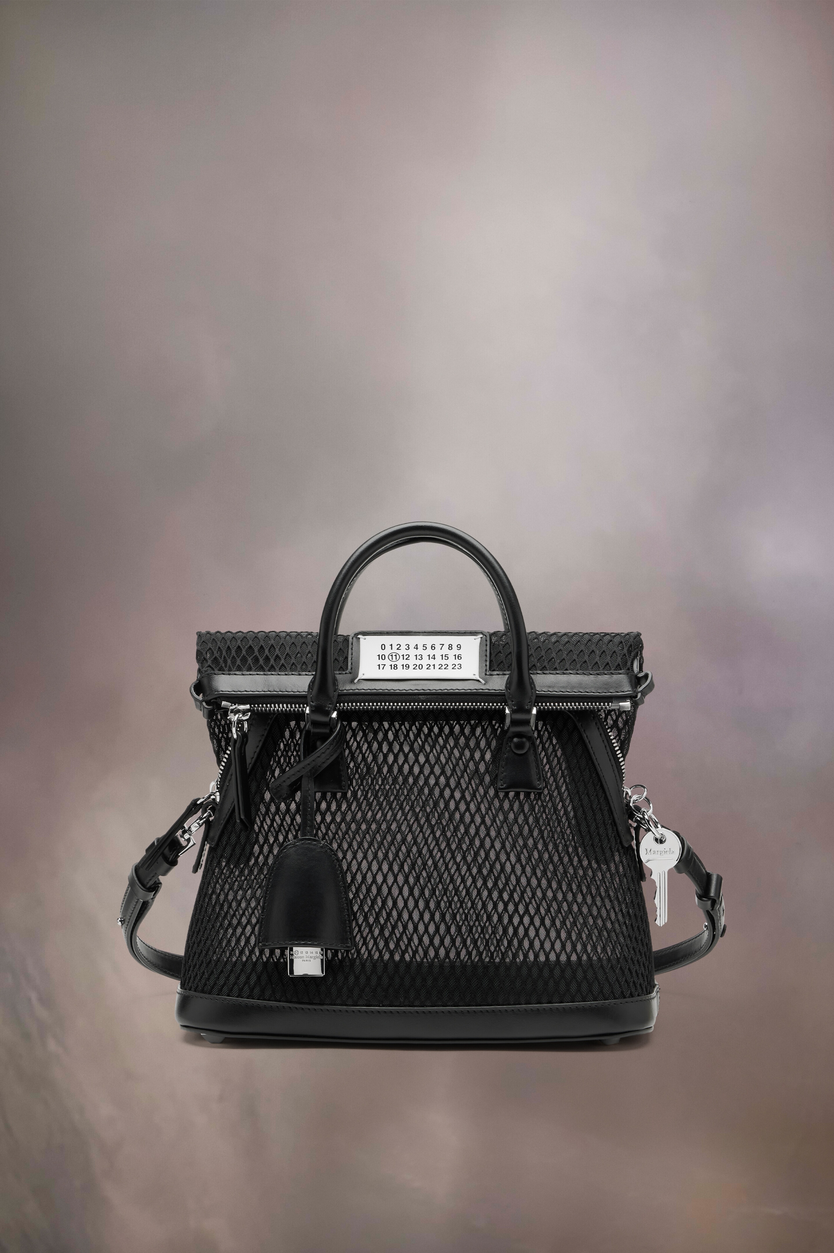 The 5AC Classique mini, crafted from calf leather and net, features top handles and a tonal shoulder strap. It is accented with the logo label at the front. The iconic 5AC line takes its name from the French word 'sac' (bag). It explores the Maison's Anonymity of the lining concept. The bag's metal rivets are covered in leather by hand, with the metal visible only where needed, for a clean aspect. Artisanal details include the bag's exposed edges hand-painted in tone with the leather. Product Details Item ID S56WG0082P7263HA751 Body: 58% Polyamide-Nylon 42% Polyester Contrast: 100% Calf Leather Inside: 100% Calf Leather Metallic hardware Handbag in net and calf leather Handle Detachable and adjustable leather shoulder strap Logo label on the front Lock and key with logo Double zip to fold the head of the bag inside Four stitches at the back Zip pocket inside Internal flat pocket Inside logo stamp Metal feet Clean with a gentle cleaner Made in Italy