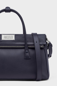 The 5AC East West takes Maison Margiela’s signature 5AC handbag and infuses an Informal Formality mood. Crafted from goat leather, it features top handles and a fold-over design. It is accented with the logo label at the front. The iconic 5AC line takes its name from the French word ‘sac’ (bag). The East West variation is the latest addition to the 5AC family of subverted modern classics, revisited in an elongated size with more volume. Modelled on a men’s briefcase, with a horizontal shape that inspired its name, the bag can be worn by hand, over the shoulder or crossbody. The style continues to explore the Maison’s Anonymity of the lining concept to reveal its internal structure. Product Details Item ID SB2WD0076P5348T6460 Body: 100% Goat Leather Application: 100% Calf Leather Lining: 100% Polyester Inside: 100% Goat Leather Metallic hardware Top-handle bag in grained leather Detachable and adjustable leather shoulder strap Zip closure at the top Internal zipped pocket Numeric signature label at the front Four stitches at the back Made in Italy
