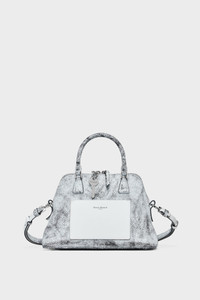 Cracked white paint coats the surface of the 5AC Loved to Death mini, creating a finish that’s designed to shift with wear. Applied over washed, softened calf leather, the semi-rigid coating reveals texture and tonal irregularity over time. The iconic 5AC line takes its name from the French word 'sac' (bag). It explores the Maison's Anonymity of the Lining concept. Finished with the Maison's numeric artwork. Product Details Item ID SB1WG0075P8568H9672 Body: 100% Calf Leather Contrast: 100% Calf Leather Application: 100% Calf Leather Lining: 100% Cotton Inside: 100% Calf Leather Metallic hardware Top handle bag in crackled-effect calf leather Detachable and adjustable leather shoulder strap Zip-top fastening and fold-over detail Leather clochette Flat pocket at the rear Maison Margiela signature at the back Made in Italy