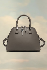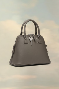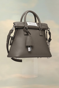 The 5AC mini bag, crafted from smooth calf leather, features top handles and a tonal shoulder strap offering multi-wear. The iconic 5AC line takes its name from the French word 'sac' (bag). It explores the Maison's Anonymity of the Lining concept and can be worn in its classic form or with the lining exposed, accented with the numerical logo label. It also presents a tag with a logo-adorned padlock and matching key. The bag's metal rivets are covered in leather by hand, with the metal visible only where needed, for a clean aspect. Artisanal details include the bag's exposed edges hand-painted in tone with the leather.