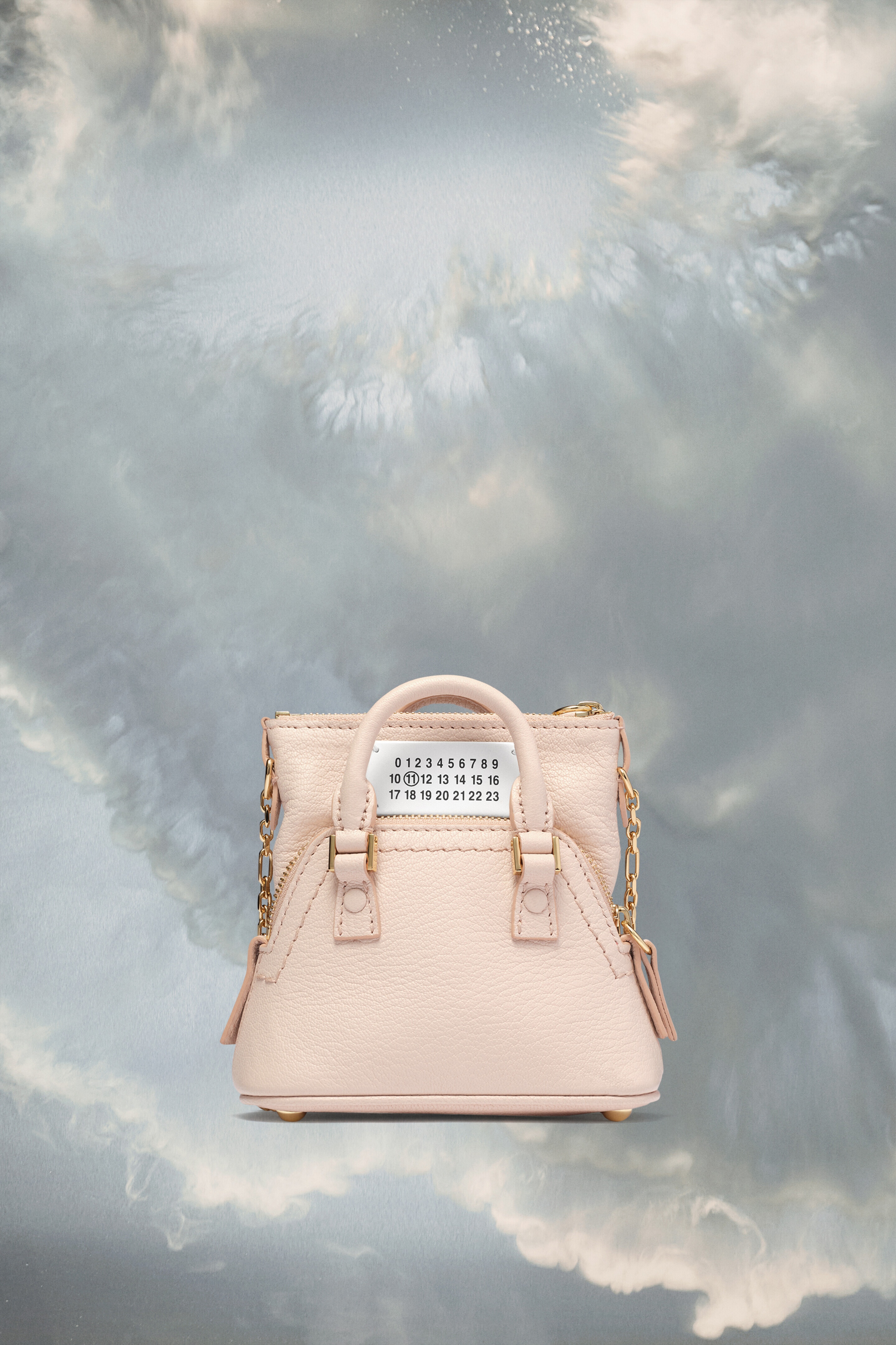 The 5AC Recicla bag, crafted from lamb leather, features top handles and a chain strap. It is accented with the logo label at the front. The iconic 5AC line takes its name from the French word 'sac' (bag). It explores the Maison's Anonymity of the lining concept. The bag's metal rivets are covered in leather by hand, with the metal visible only where needed, for a clean aspect. Artisanal details include the bag's exposed edges hand-painted in tone with the leather. Recicla pieces carry a unique Recicla label denoting its limited edition, provenance and period – an illustration of the restorative power of heritage attributes and articles imbued with the soul of history, resonating the grammar of today. Label in image is an example only. Product Details Item ID SB3WG0025P6106T4090 COED Fall Winter 2023 Outer: Grainy goat nappa leather with soft touch Inside: Goat leather Lining: Cotton Adjustable chain shoulder strap Logo label at the front Zip closure Inside Four stitches Inside logo stamping Metal feet Clean with a specific leather cleaner product and a humid microfiber cloth Made in Italy 9 cm x 6 cm x 13 cm/3,5 in x 2,5 in x 5 in (Height x Width x Length) Handle drop: 4 cm/1,5 in Max shoulder strap drop: 52 cm/20,4 in Min shoulder strap drop: 45 cm/17,7 in