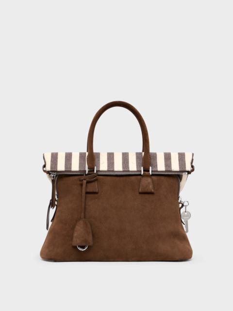 The 5AC Soft Medium brings a textural edge to the Maison’s icon. Shaped in suede leather, the pliant body collapses into folds, revealing a silhouette in motion. Top handles and a detachable strap ground the design in versatile function. The iconic 5AC line takes its name from the French word 'sac' (bag). It explores the Maison’s Anonymity of the lining concept. At the front, four white stitches affirm its signature. Product Details Item ID SB1WG0085P8829HB316 Body: 100% calf leather Contrast: 100% calf leather Lining: 100% cotton Inside: 100% calf leather Metallic parts: 100% zama Metallic parts: 100% brass Suede leather and calf leather Double top handles Detachable and adjustable crossbody strap Zip closure at the top Four stitches at the back Inside logo stamping Made in Italy
