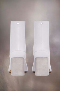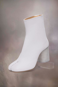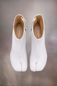 Crafted from soft nappa leather, the ankle boots feature a 8cm cylindrical heel and the Tabi split-toe shape, inspired by the traditional 15th century Japanese sock bearing the same name – launched for the Maison's debut collection in 1989. It captures the avant-garde and insubordinate spirit of the Maison and exists as a heritage classic, continually explored through each collection. Product Details Item ID S58WU0260P3753T5186 Upper: 100% lamb leather Lining: 100% calf leather Inside: 100% calf leather Sole: 100% calf leather Contrast: 100% rubber Heel height: 8 cm/3 in Cylindrical heel Ankle boots in nappa leather Tabi split toe White stitching at the back Maison Margiela logo on the sole Hook closure Due to the delicacy of nappa leather, it is recommended to use vegetable leather products for care and maintenance Made in Italy A digital certificate provided by the Aura Blockchain Consortium guarantees the authenticity of this product. Discover more on auraluxuryblockchain.com/#about