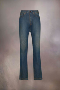 In an Americana wash for a dirty denim effect, the jeans are straight-leg with five-pocket styling, the Margiela hook closure and a Memory of logo patch. Maison Margiela’s signature, the Four stitches, appear at the back; the opposite of a label. Product Details Item ID S51LA0172S30876961 Primary fabric: 100% cotton Pocket lining: 65% polyester, 35% cotton 5 pockets broken twill denim Light dirty effect Button closure Belt loops Straight leg Four stitches at the back Made in Italy