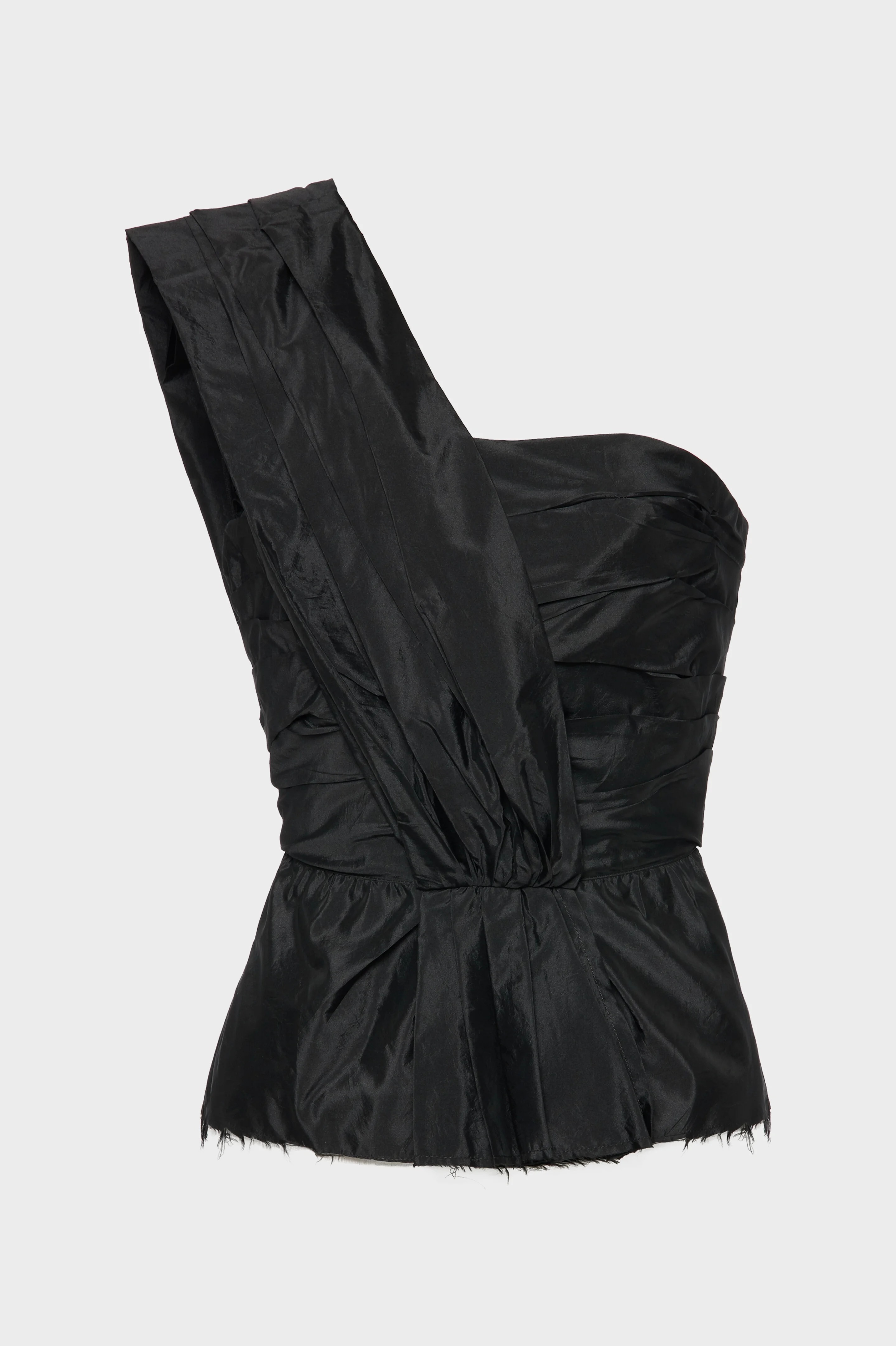 Draped across the shoulder and gathered at the waist, this top evokes the structure of eveningwear in a state of unravelling. Cut from lightweight taffeta, its silhouette is both sculptural and undone. Raw edges at the hem leave the construction visible – an homage to the Maison’s deconstructive approach. Maison Margiela’s signature, the four stitches, appear at the back; the opposite of a label. Product Details Item ID S51NC0629M35350900 Primary Fabric: 75% Polyester 25% Polyamide-Nylon Lining: 65% Polyester 35% Cotton Asymmetric top in soft peplum shape One-shoulder silhouette Fitted bodice with gathered pleats Raw-edge hem Four stitches at the back Made in Italy