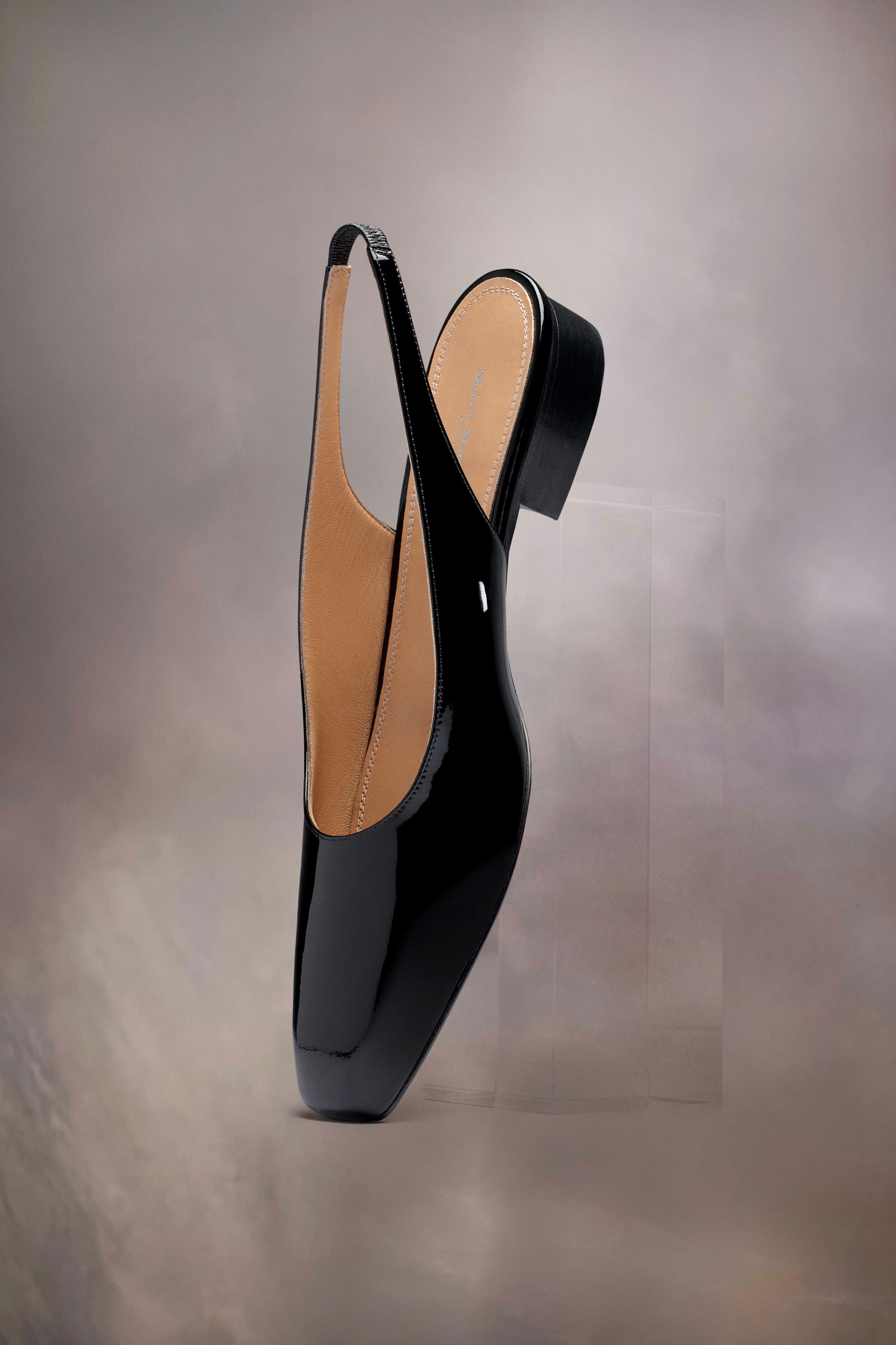 The Barbs slingback are crafted from patent leather. They feature a heel strap, almond shaped toe and have a small heel. At the back a single white stitch shows the hand of Maison Margiela. Product Details Item ID S58WZ0123P4347T8013