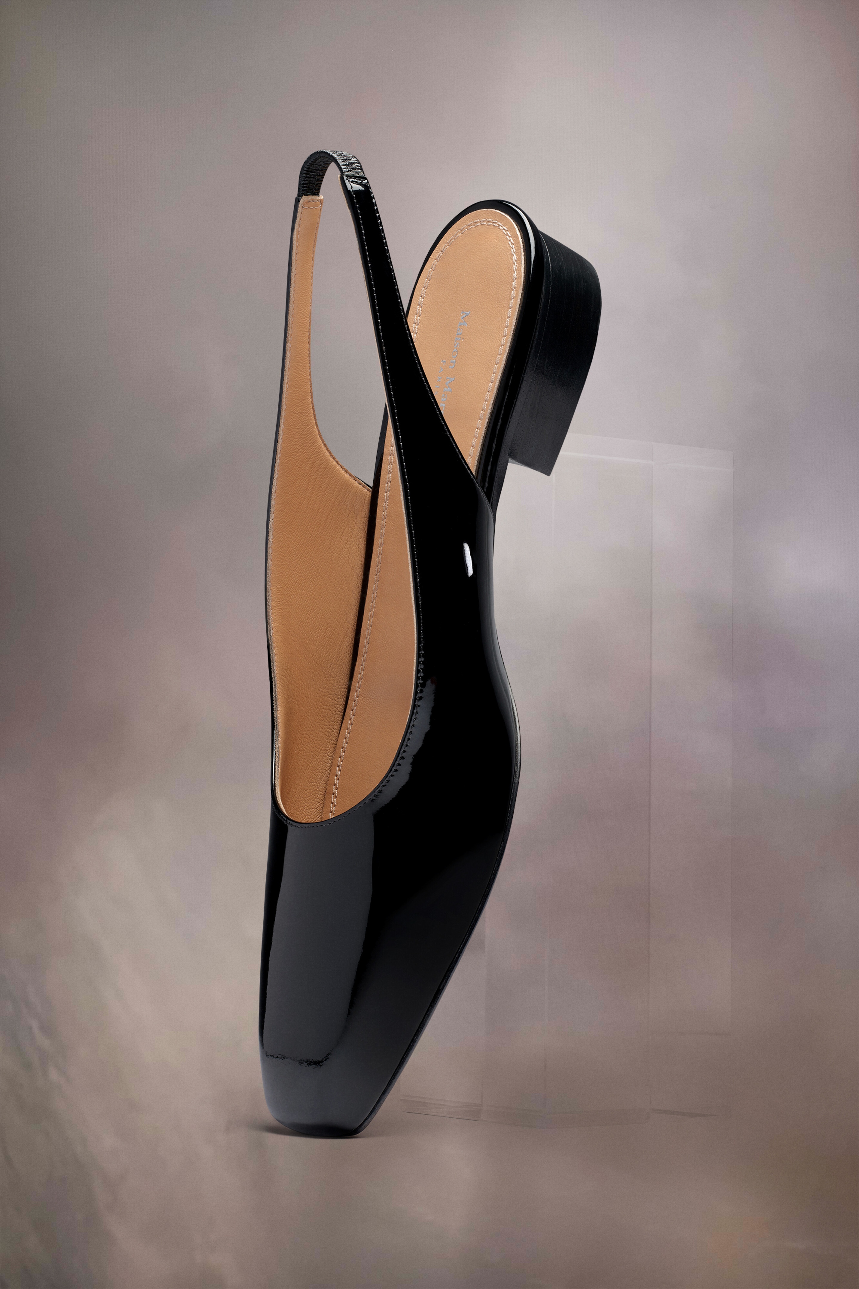 The Barbs slingback are crafted from patent leather. They feature a heel strap, almond shaped toe and have a small heel. At the back a single white stitch shows the hand of Maison Margiela.