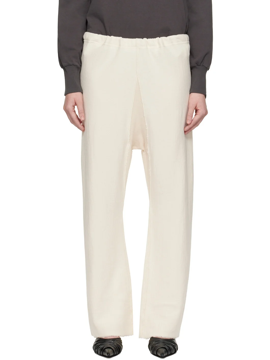 Loose-fit and straight-leg French terry lounge pants. · Drawstring at elasticized waistband · Rib-knit gusset at inseam · Raw edge at cuffs · White stitching at back Supplier color: Ecru 100% cotton. Made in Italy 251168F087012