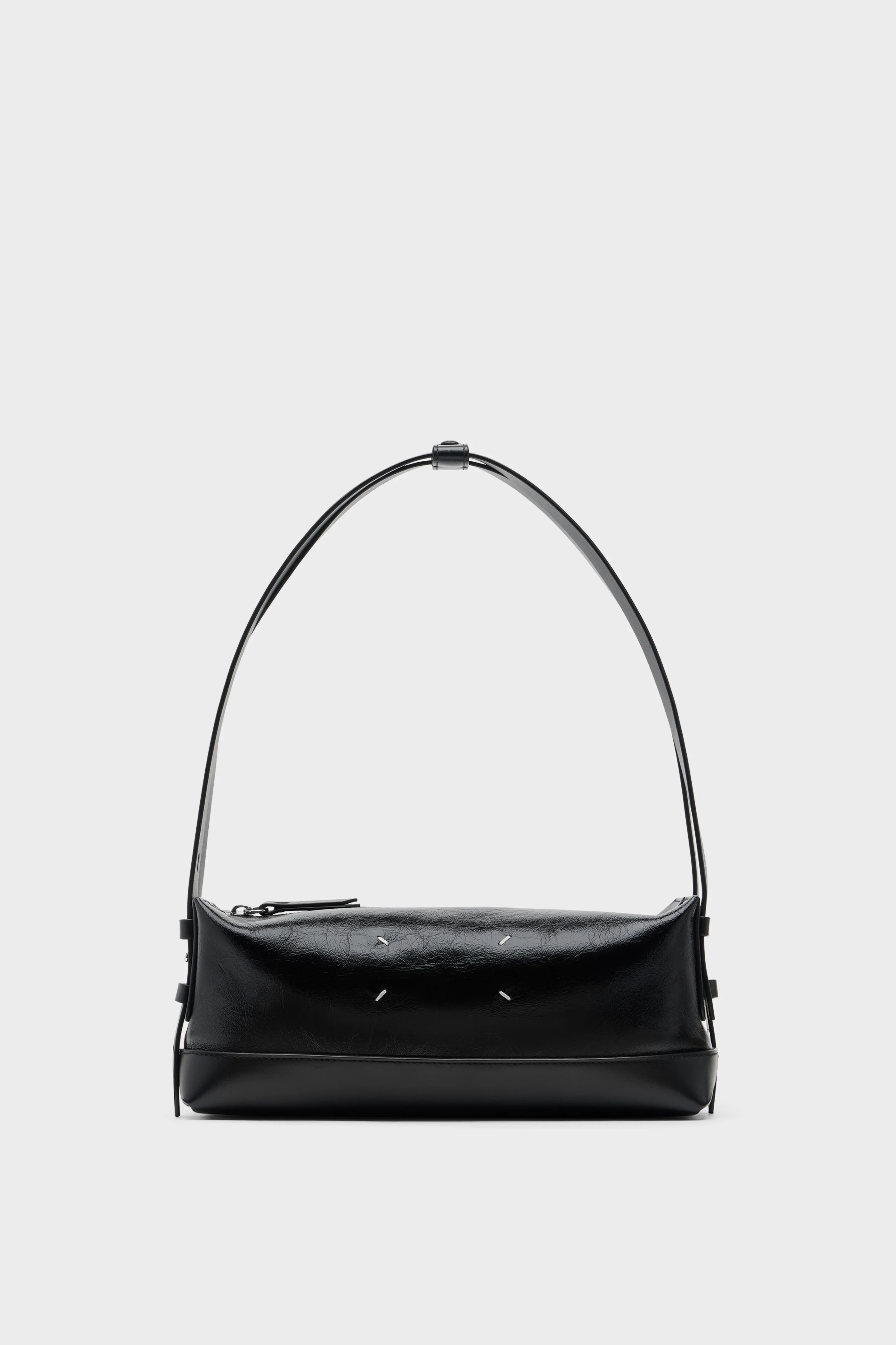 A small shoulder bag in wrinkled glossy leather and calf leather. Belted top handles adjust in length, while structured silhouette and a metallic zip closure finish the design. The Maison’s signature, the four stitches, appear at the front; the opposite of a label. Product Details Item ID SB1ZH0006P8830HB331 Body: 100% calf leather Inside: 100% calf leather Lining: 100% calf leather Metallic hardware: 100% brass Metallic hardware: 100% zama Wrinkled glossy leather effect Shoulder straps with buckle adjustment Logo application on the front Zip closure Four stitches at the back Inside logo stamping Made in Italy