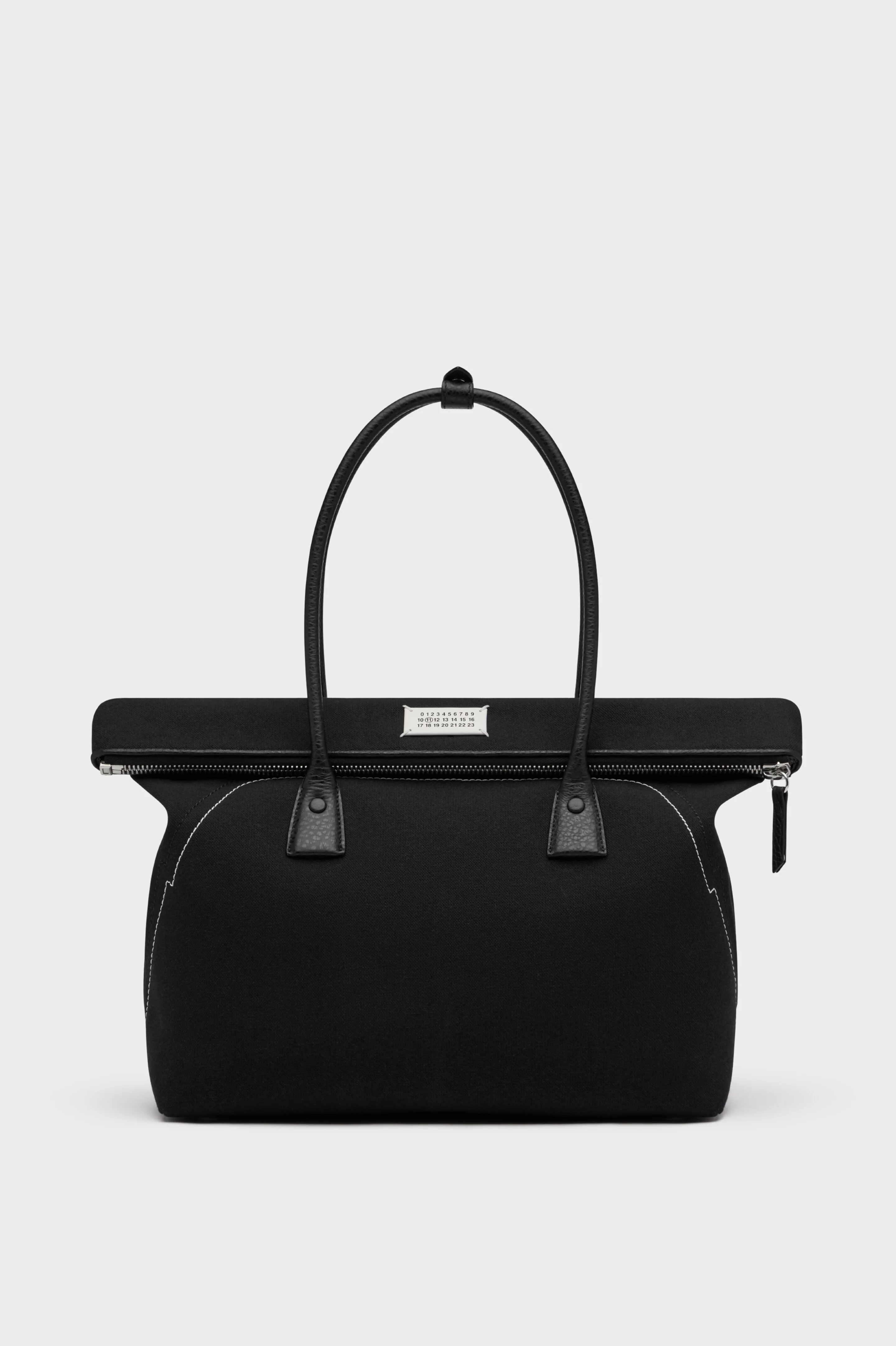 The 5AC shopping medium, crafted from grainy leather, is accented with the logo label on the inner. The iconic 5AC line takes its name from the French word 'sac' (bag). It explores the Maison's Anonymity of the lining concept. The bag's metal rivets are covered in leather by hand, with the metal visible only where needed, for a clean aspect. Artisanal details include the bag's exposed edges hand-painted in tone with the leather. Product Details Item ID SB1WC0012P4348T8013 Body: 100% Calf Leather Contrast: 79% Cotton 16% Polyester 5% Other Fibers Lining: 100% Cotton Inside: 100% Calf Leather Metallic hardware Top-handle bag in canvas and grained leather Oversized zip closure along the top Canvas folds reveal a leather base Numeric signature label at the front Internal zipped pocket Four stitches at the back Made in Italy