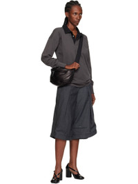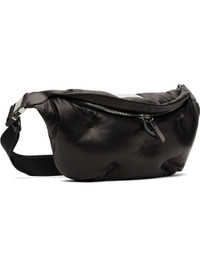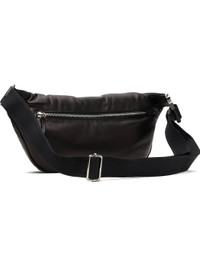 Grained sheepskin belt bag. · Adjustable crossbody strap with buckle · Logo patch and white stitching at top · Tufting at face · Zip compartment at back face · Zip closure at main compartment · Zip pocket at interior · Satin lining · H7" x W16" x D4.5" Supplier color: Black Sheepskin. Made in Italy 252168F045000