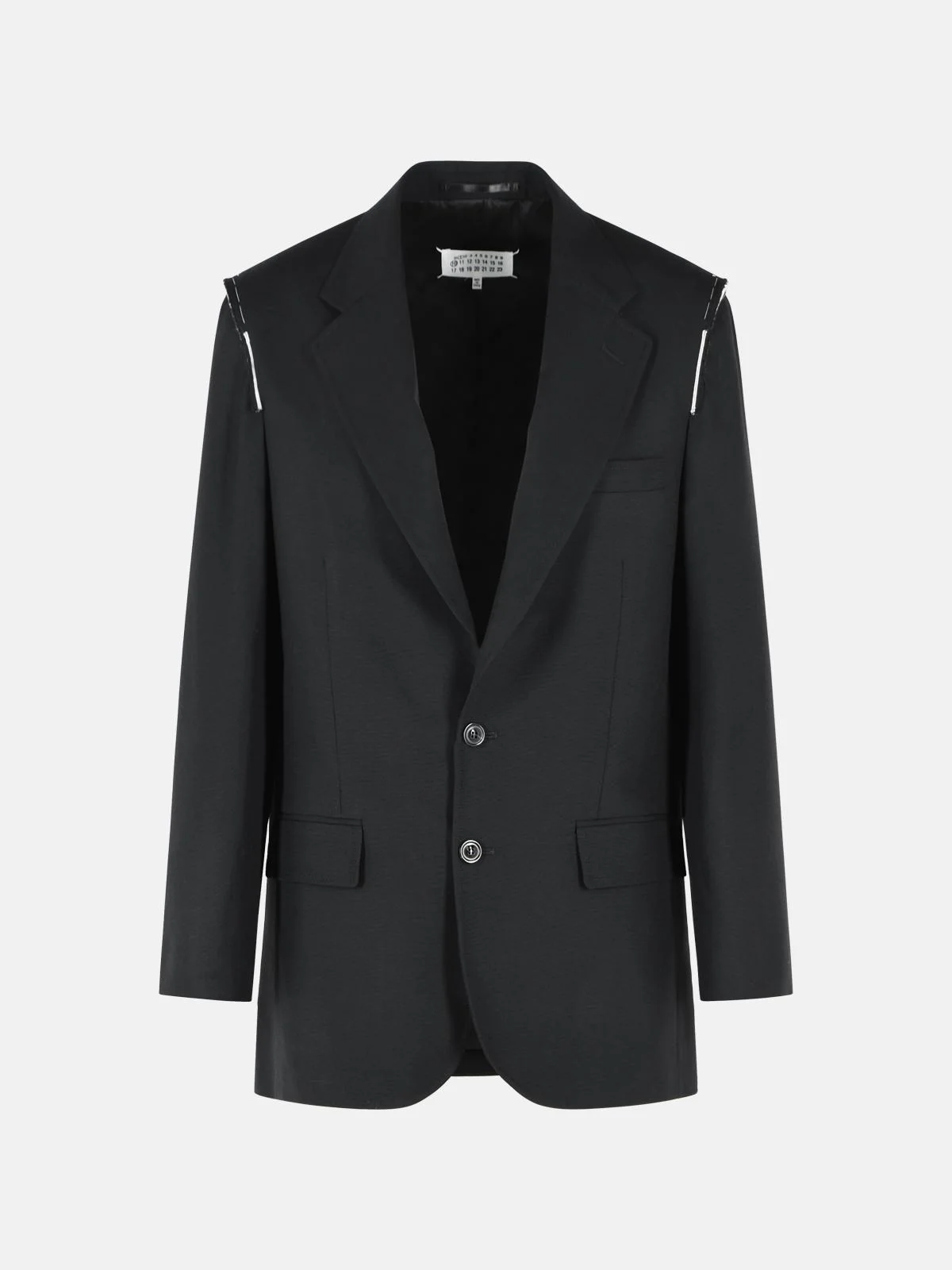 Manufacture code: S50BN0549 M35745 900 Retail code: S50BN0549 M35745 900 V-neck with lapels, single-breasted button closure, welt pocket on the chest, front flap pockets, unfinished padded shoulders, button cuffs, iconic white stitching at the back, back central split hem, two inside slit pockets, lined garment Main: 100% virgin wool Made in Italy
