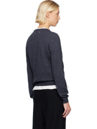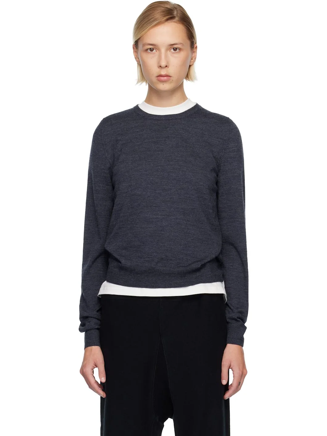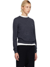 Knit wool sweater. · Rib-knit crewneck, hem, and cuffs · White stitching at back collar Supplier color: Dark blue 100% wool. Made in Romania 252168F096002