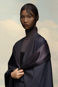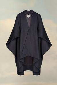 Wrapped like a blanket, this coat in British mohair presents a draped design for a new silhouette. At the back, four white stitches show the hand of the Maison: the opposite of a label. The model is 180cm tall. Model wears size S.