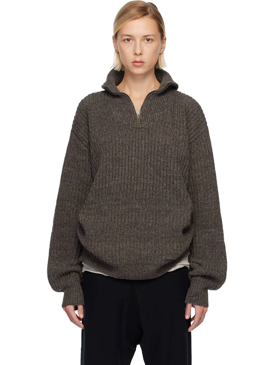 Rib-knit virgin wool- and cotton-blend jacket. · Stand collar · Half-zip closure · Dropped shoulders · White stitching at back collar Supplier color: Brown 51% virgin wool, 47% cotton, 2% other fibres. Made in Italy 252168F097001