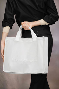 In nylon with calf leather contrast, the large shopping bag is complete with long and short top handles plus inner pockets. It is adorned with the Maison Margiela logo across the front. Product Details Item ID SB2WC0003P6761HA498 Body: 100% nylon Contrast: 100% calf leather Application: 100% polyurethane Inside: 100% cotton Shopping bag in net and leather Fabric and leather handles Logo label on the front Button closure Inside pockets Made in Italy 38 cm x 13 cm x 49 cm/15 in x 5 in x 20 in (Height x Width x Length) Handle drop: 16,5 cm/6,5 in A digital certificate provided by the A digital certificate provided by the Aura Blockchain Consortium guarantees the authenticity of this product. Discover more on auraluxuryblockchain.com/#about Blockchain Consortium guarantees the authenticity of this product. Discover more on A digital certificate provided by the Aura Blockchain Consortium guarantees the authenticity of this product. Discover more on auraluxuryblockchain.com/#aboutluxuryblockchain.com/#about