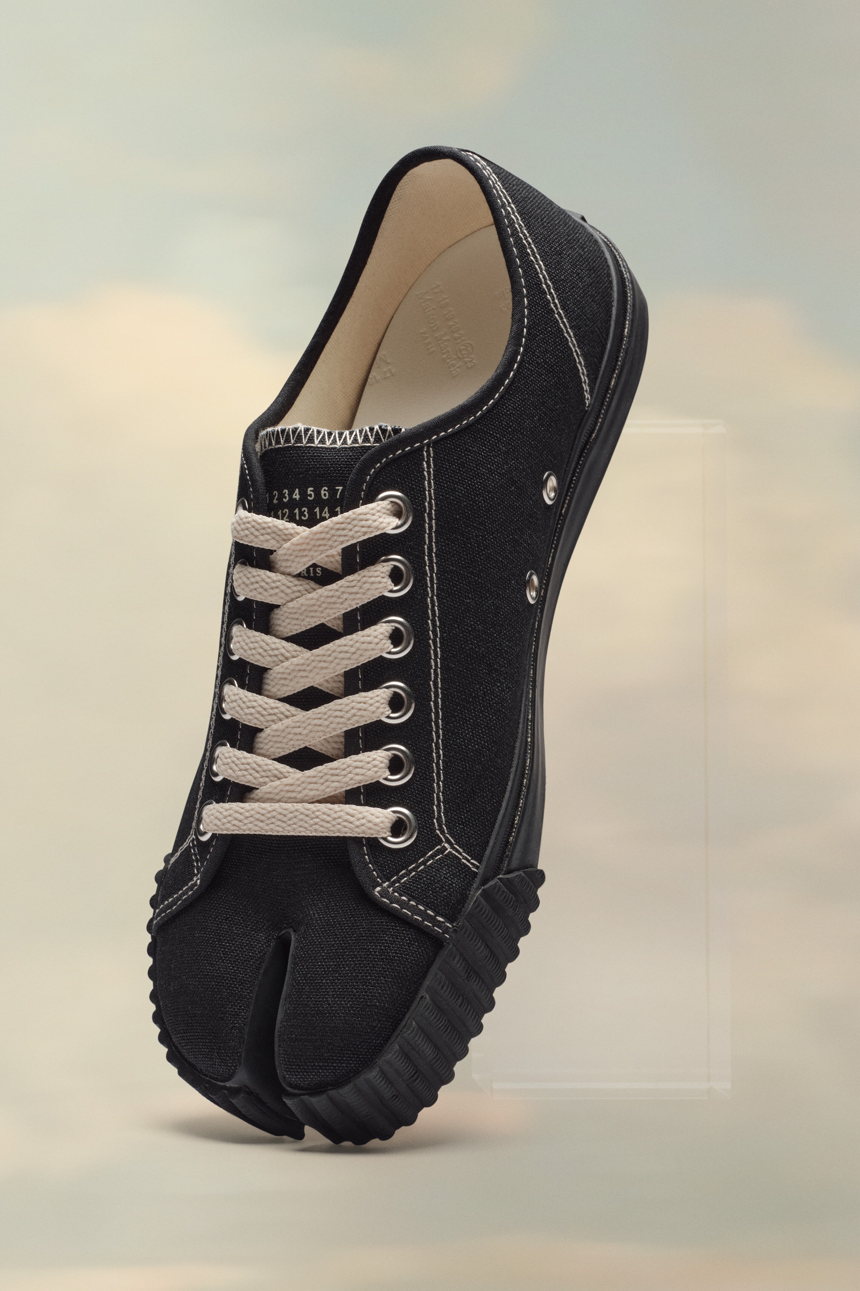 In canvas, the sneakers have a ribbed front sole, numeric logo at the back, and feature the Tabi split-toe, inspired by the traditional 15th century Japanese sock bearing the same name – launched for the Maison's debut collection in 1989. It captures the avant-garde and insubordinate spirit of the Maison and exists as a heritage classic, continually explored through each collection. Product Details Item ID S38WS0185P4291T8013 Upper: 100% cotton Lining: 100% cotton Sole: 100% rubber Canvas sneakers Tabi split toe Lace-up Logo label on the tab Logo label at the back White stitching at the back All-over logo insole A digital certificate provided by the Aura Blockchain Consortium guarantees the authenticity of this product. Discover more on auraluxuryblockchain.com/#about
