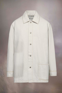 The jacket in chalk selvedge denim features a side pocket and two Memory of pockets. Metal buttons and exposed stitching complete the look. Maison Margiela's signature, the four stitches, appear at the back; the opposite of a label. Product Details Item ID S51AM0486S30857961 The model is 5'9" tall and wears size 40.
