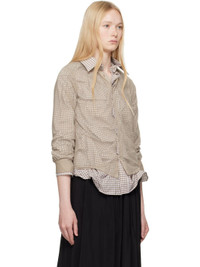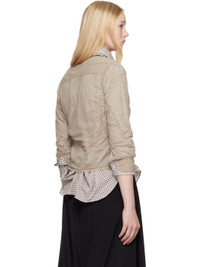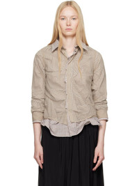 Cotton poplin shirt. Check pattern and gathering throughout. · Sheer polyester chiffon overlay · Concealed button closure · Shirttail hem · Buttoned barrel cuffs · White stitching at back collar Supplier color: Brown Body 1: 100% cotton. Body 2: 100% polyester. Made in Italy 251168F109006